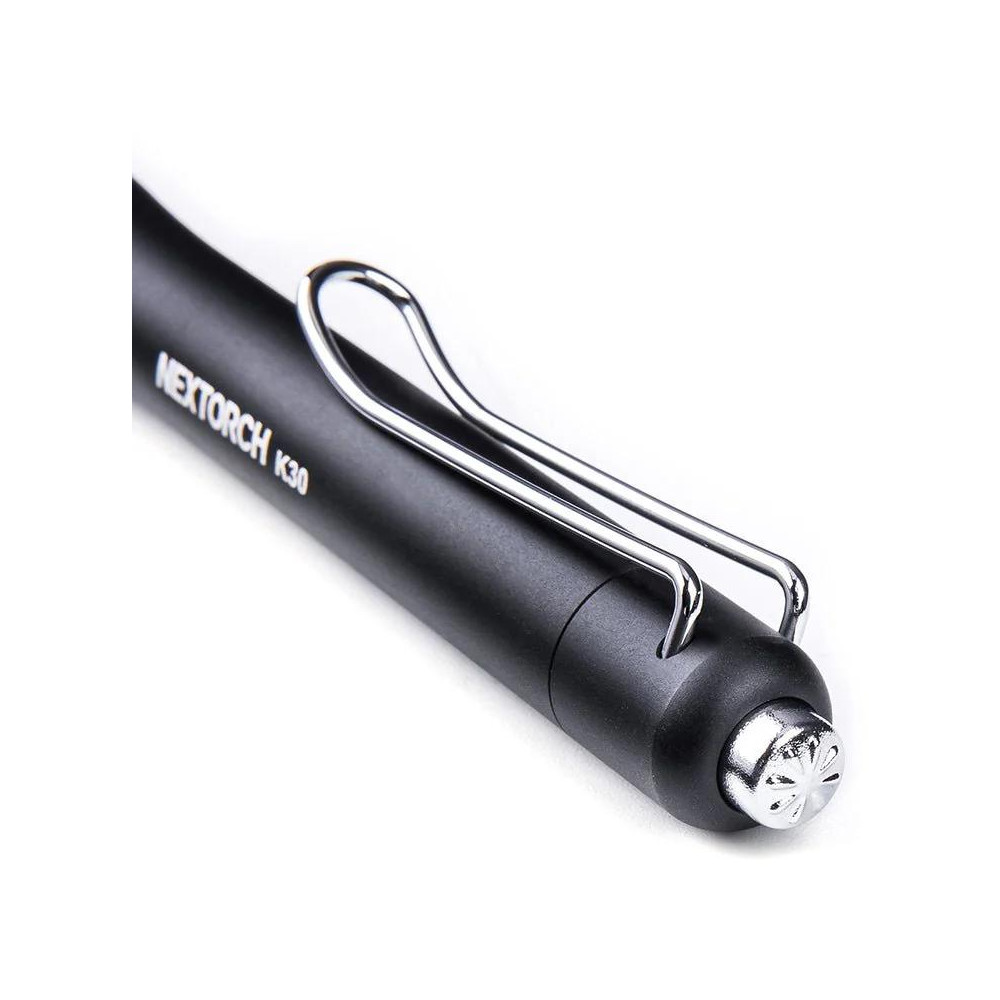 مصباح Nextorch K30 بحجم القلم، ويتميز بقوة إضاءة جيدة تصل إلى 850 لومن . هذا يجعله خيارًا مثاليًا للحمل اليومي. هيكله مصنوع من مصنوع من ألومنيوم الطائرات، مزود بمشبك معدني عملي في نهايته. يعمل المصباح ببطاريتين قياسيتين من نوع AAA .