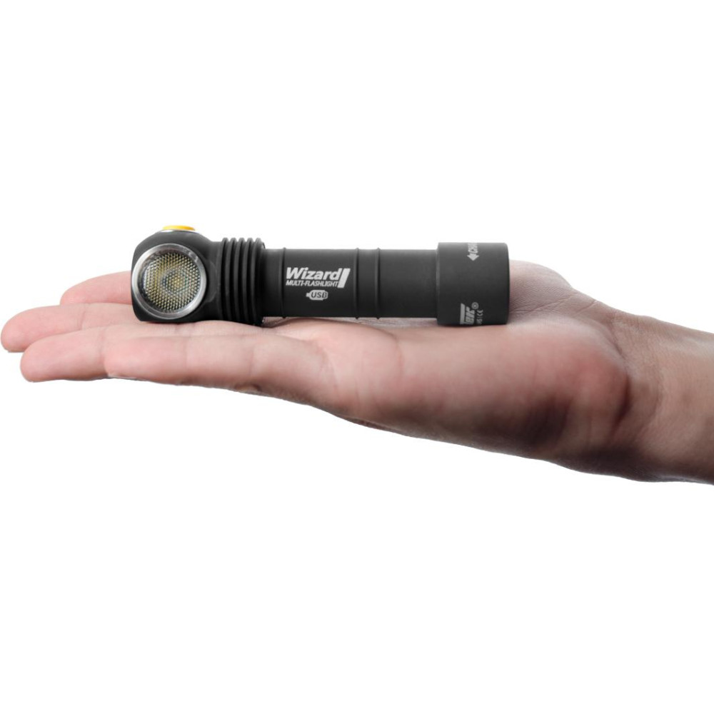مصباح يدوي LED متعدد الأغراض من Armytek Wizard مصنوع من ألومنيوم الطائرات المتين، ويجمع بين تصميم مصباح أمامي ومصباح يدوي كلاسيكي. يتميز هذا المصباح الصغير بتدفق ضوئي مذهل يبلغ 1250 لومن LED، ويصل مداه إلى 119 مترًا. يمكن شحنه من أي مصدر طاقة باستخدام شاحن USB مغناطيسي . يسمح لك المغناطيس القوي الموجود في نهايته بتثبيت المصباح على أي سطح معدني.