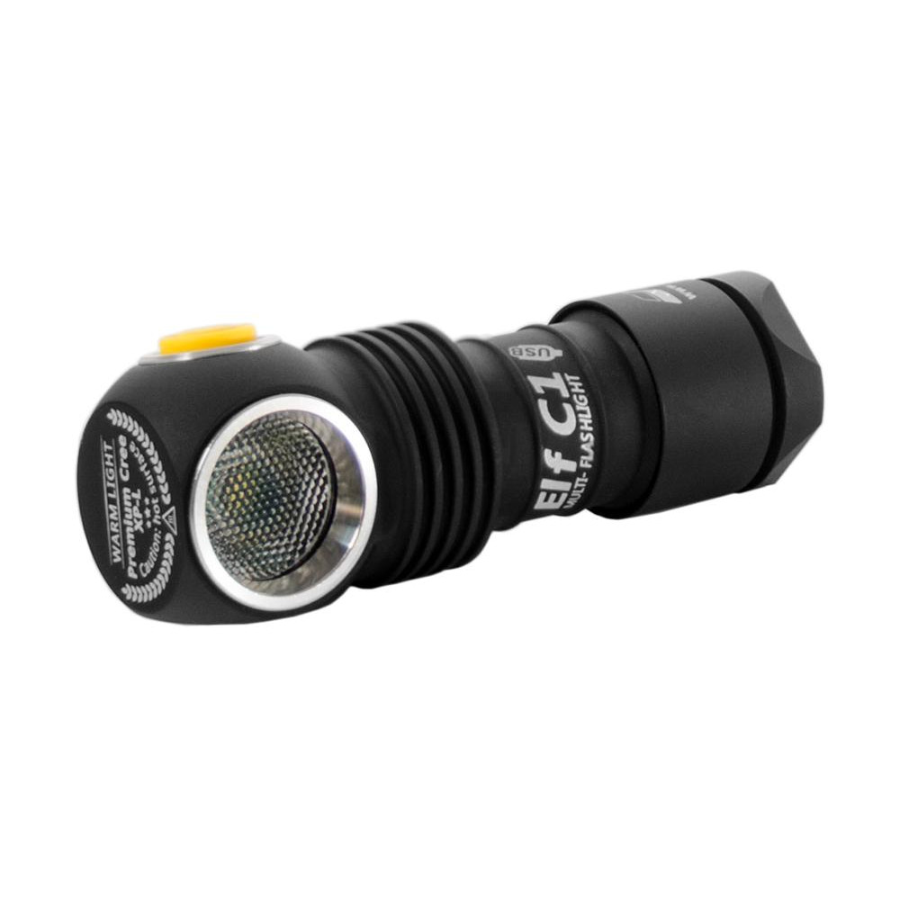 Multifunkční outdoorová svítilna Armytek Elf C1 XP-L kombinuje čelovku s klasickou svítilnou.