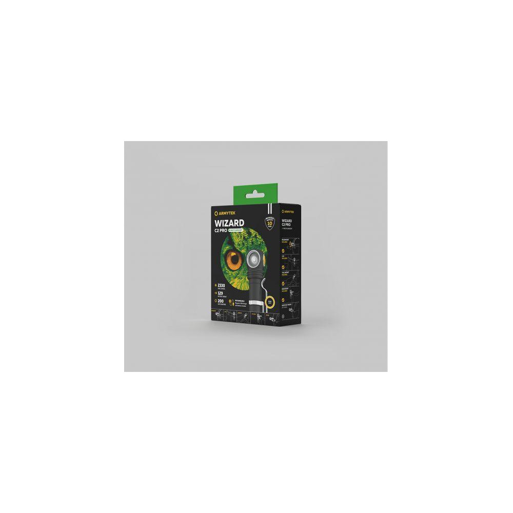 Armytek Wizard C2 Pro se může pochlubit neuvěřitelným jasem až 2330 lumenů a dosvitem 129 metrů. Díky výkonné elektronice Pro poskytuje působivý světelný výkon a dobu svícení až 200 dní v režimu Firefly (světlušky). Nabíjí se z jakéhokoli zdroje energie pomocí inovované magnetické USB nabíječky. Silný magnet v koncovce umožňuje připevnění svítilny na jakýkoliv kovový povrch.