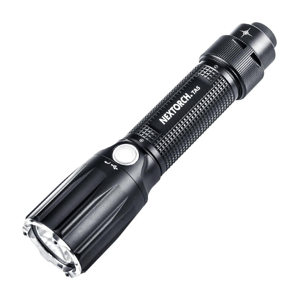 Taktická LED svítilna Nextorch TA5 je speciálně navržená pro profesionály např. z řad ozbrojených složek. TA5 má dvě tlačítka: jedno pro taktiku na namáčknutí a okamžité osvětlení nebo druhé pro konstantní svícení. Světelný výkon 900 lumenů zaručuje dosvit až 240 metrů. Hlava této taktické svítilny je osazena keramickými hroty pro rozbití skla. Li-Ion baterii 18650 s kapacitou 2600 mAh lze nabíjet přímo ve svítilně pomocí microUSB slotu.