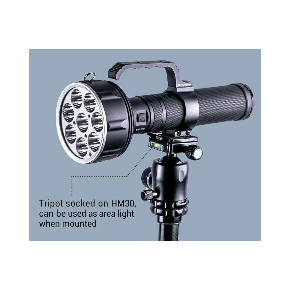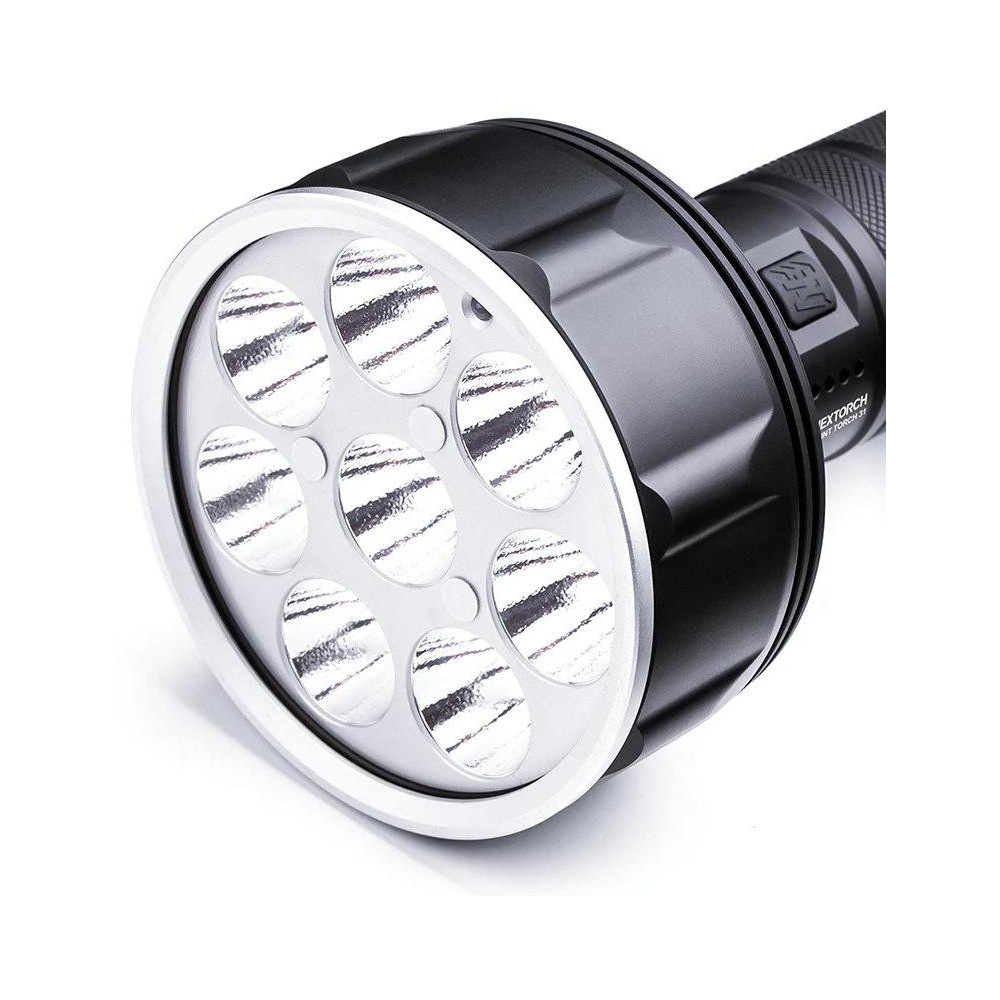 Svítilna Nextorch Saint Torch 31 je vysoce výkonná pátrací svítilna s dosvitem 740 m a ohromujícím světelným tokem 20 000 lumenů. Zdrojem toto silného světla je celkem 8 LED diod. Přestože má svítilna větší rozměry, výrobce k ní raději dodává i popruh a dokonce tašku, je tato svítilna překvapivě lehká. Výhodou je možnost použití jako powerbanky, v případě potřeby si tak jednoduše ze svítilny nabijete např. mobil. Příjemným bonusem je velmi rychlé dobíjení výkonného akumulátoru, které zabere pouhé 3 hodiny.