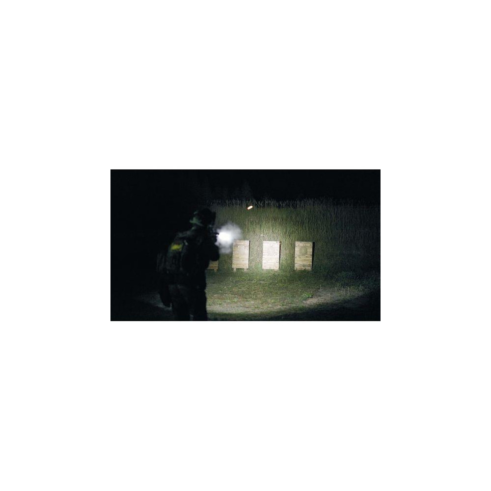 Výkonná LED dioda produkuje bílé světlo o síle 1250 lumenů s dosvitem až 320 metrů. Infračervený IR přísvit má vlnovou délku 940 nm a lidským okem je neviditelný, takže neodhalí Vaši pozici. V kombinaci s nočním viděním tak získáte obrovskou výhodu. Nelze také opomenout režim stroboskopu, který se svým plným výkonem 1250 lm dokáže spolehlivě oslnit a zmást jakéhokoliv útočníka.