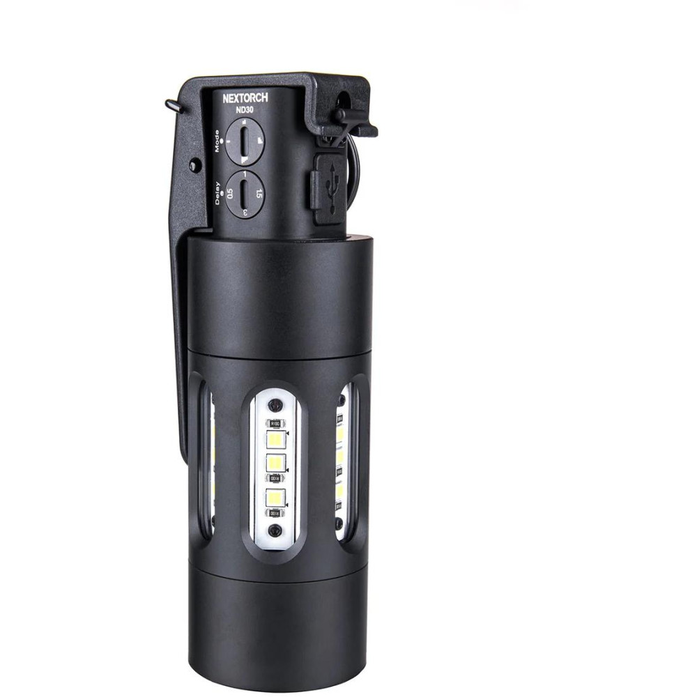 NEXTORCH ND30 je vyhledávaný taktický nástroj, který poskytuje možnost odvedení pozornosti bez regulačních omezení tradičních oslepujících granátů. Tento inovativní systém kombinuje 11 000 lumenů dezorientujícího stroboskopu s výstupním zvukem 130 dB a poskytuje tedy rychlé nasazení, maximální účinek a spolehlivost v každé situaci profesionálům, na výcvik i domácí obranu.