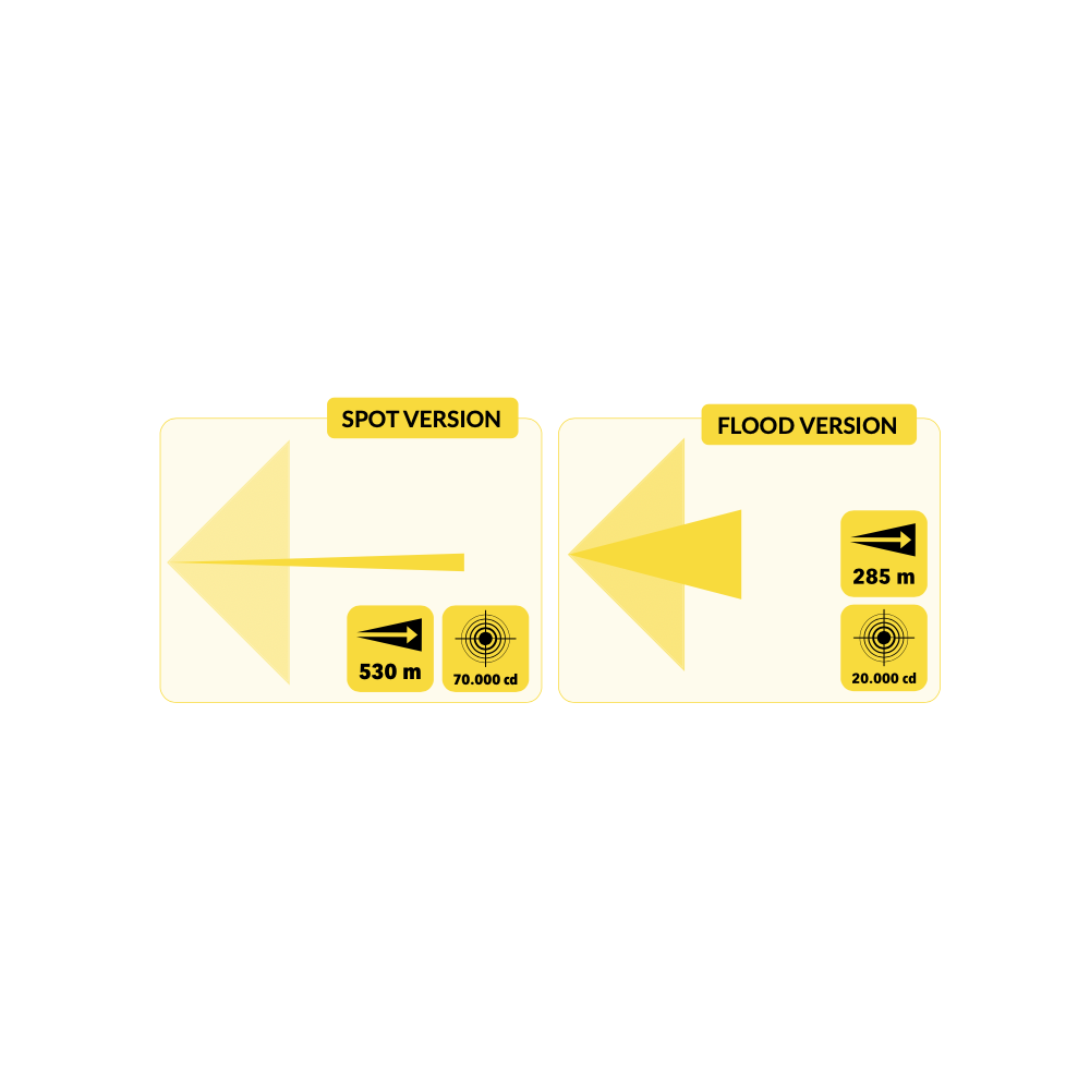 Světelný zdroj: 70.000 cd (Spot) / 20.000 cd (Flood) / 500 lm