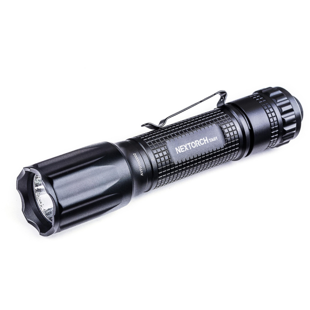 Nextorch TA01 Taktische Taschenlampe – Hauptvorteile: Maximale LED-Leistung: 500 Lumen. Neues Lampenkopfdesign: Verbesserte Wärmeableitung und helleres Licht mit höherer Lumenanzahl. Taktischer Knopf: Sanfteres, komfortableres und geräuschloses Drücken. Standardmäßig nur zwei Modi: Dauerlicht und Sofortlicht. Kompakte Größe für hohen Tragekomfort im Alltag. Die Taschenlampe ist aus Flugzeugaluminium gefertigt und daher besonders leicht und robust. Stromversorgung: 1 x 18650 Akku oder 2 x CR123A Netzteil. Einsatzbereiche: Alltag, Professioneller Einsatz, Taktische Operationen, Sicherheitsdienste. Lieferumfang: Nextorch TA01 Taschenlampe, Li-Ion 18650 Akku (2600 mAh), CR123A Netzteil, Micro-USB-Kabel, Handschlaufe
