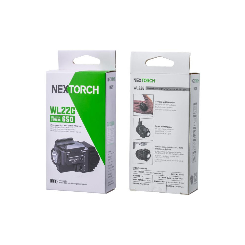 Die wiederaufladbare Pistolenlampe Nextorch WL22G ist eine brandneue Ergänzung auf dem Markt für taktische Pistolenlampen. Die hervorragende Kombination aus hellem Weißlicht mit einer Leistung von 650 Lumen und einem 5 mW grünen Laser macht diese Taschenlampe zu einem Spitzenprodukt zu einem unschlagbaren Preis.