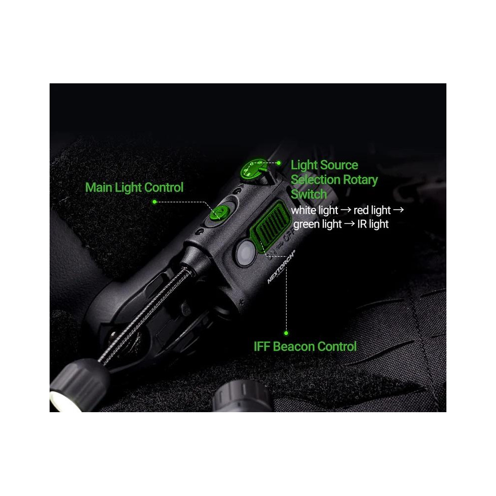 Das IFF-Signal mit Infrarotlicht ermöglicht die einfache Identifizierung von Kameraden oder Feinden auf dem Schlachtfeld. Bei Aktivierung erlischt das Hauptlicht, und nur das für das bloße Auge unsichtbare Infrarotsignal leuchtet auf. So müssen Sie sich keine Sorgen machen, dass Ihre Position preisgegeben wird.