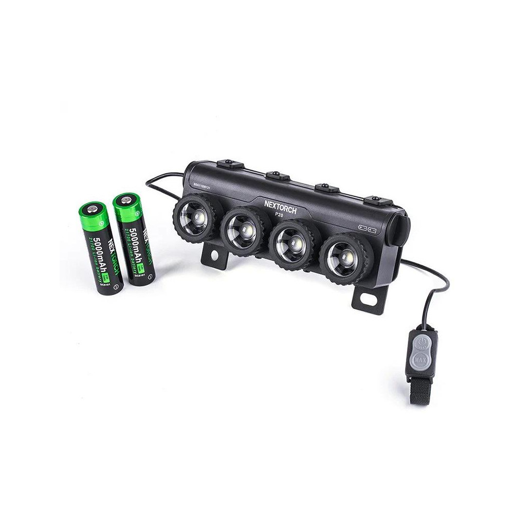 Die Nextorch P20 ist eine professionelle Taschenlampe, die speziell für die Bedürfnisse von Streitkräften entwickelt wurde. Sie wird mittels Klettverschluss oder Schrauben an der ballistischen Schutzweste befestigt. Die vier OSRAM P9 LEDs erzeugen eine Lichtleistung von 4000 Lumen , die im Stroboskopmodus zuverlässig jeden im Weg stehenden Angreifer blendet. Die maximale Reichweite beträgt bis zu 550 m.