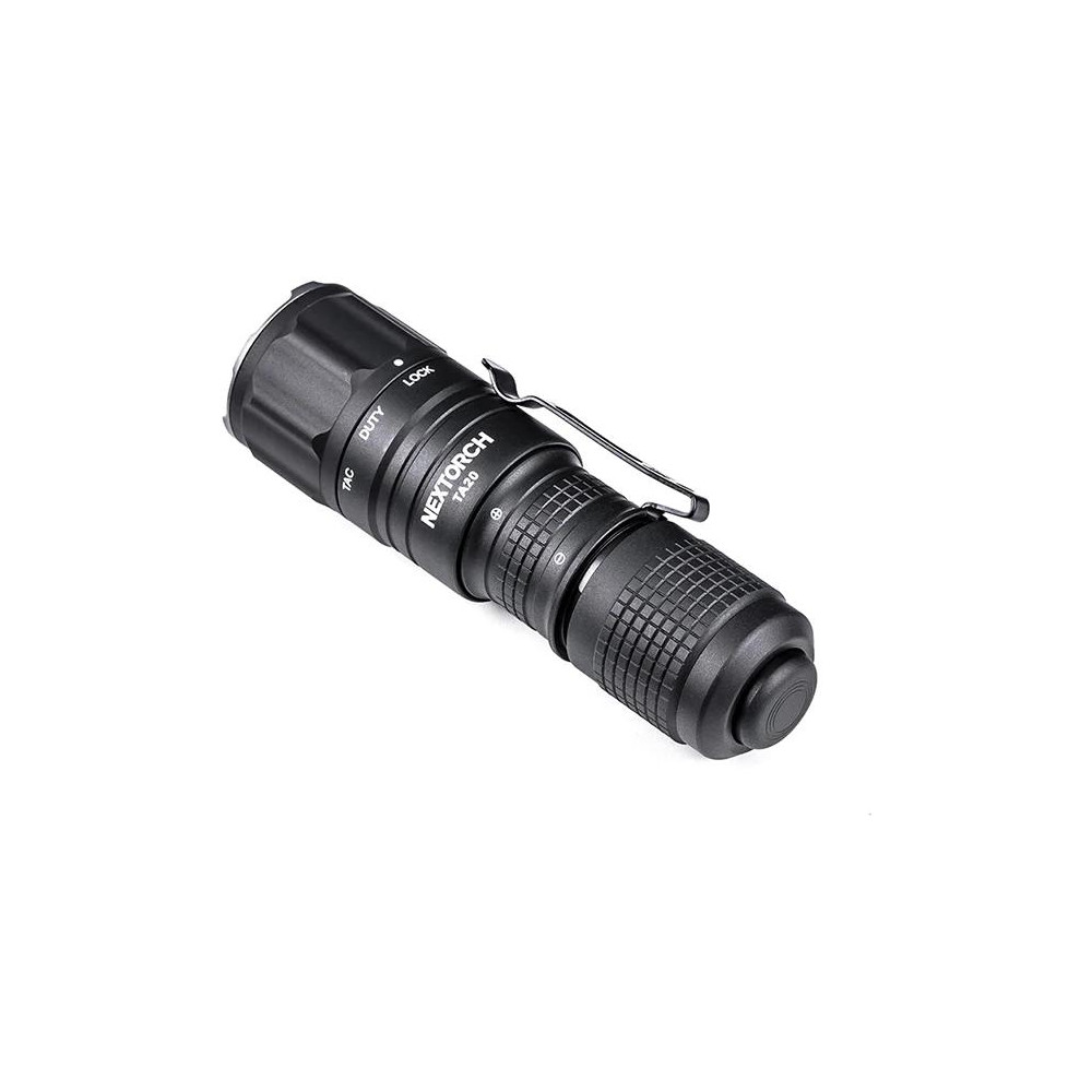 Kleine und leistungsstarke taktische Taschenlampe, geeignet für den täglichen und professionellen Einsatz. Sie ist extrem staub-, stoß- und wasserfest und entspricht der Schutzart IPX8 . Das Aufladen erfolgt bequem per USB-C-Kabel. Dank des FR-1-Rings ist sie auch beim Halten einer Waffe etc. problemlos einhändig bedienbar.