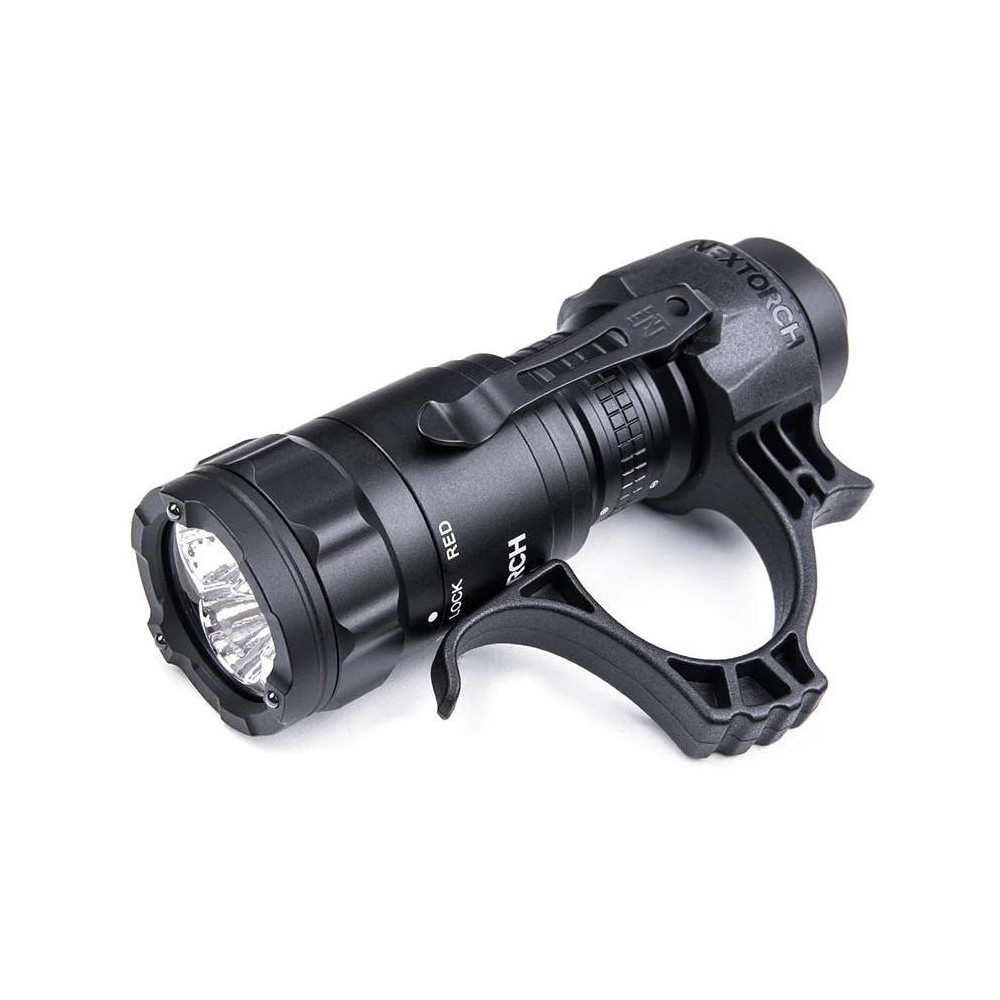Compact tactical flashlight NEXTORCH TA21 with an output of 1300 lm and a range of up to 160 m . It offers 4 lighting modes , instant strobe , red light mode and IPX8 resistance . Ideal for duty and tactical activities.