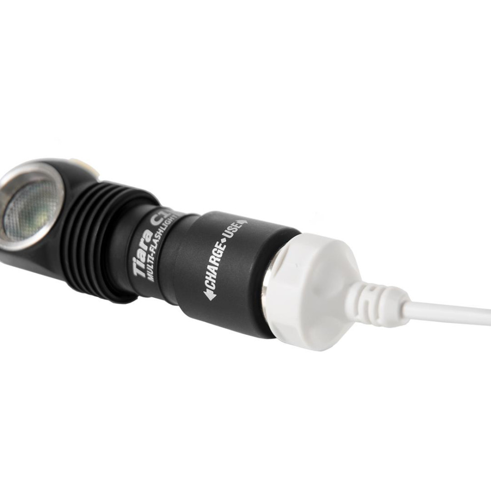 The multifunctional rechargeable flashlight Armytek Tiara C1 Pro USB Magnet is made of highly durable aircraft aluminum and its design combines a headlamp with a classic flashlight. The luminous flux is 980 lm LED and the range is up to 102 meters. The flashlight can be used thanks to its compact dimensions for a wide range of activities such as: camping, hiking, running, cycling, fishing, mountaineering, geocaching and caving. Thanks to the certified IP68 resistance against water to a depth of 10 m and a fall from a height of up to 10 m, the flashlight can withstand rough handling in a demanding environment.