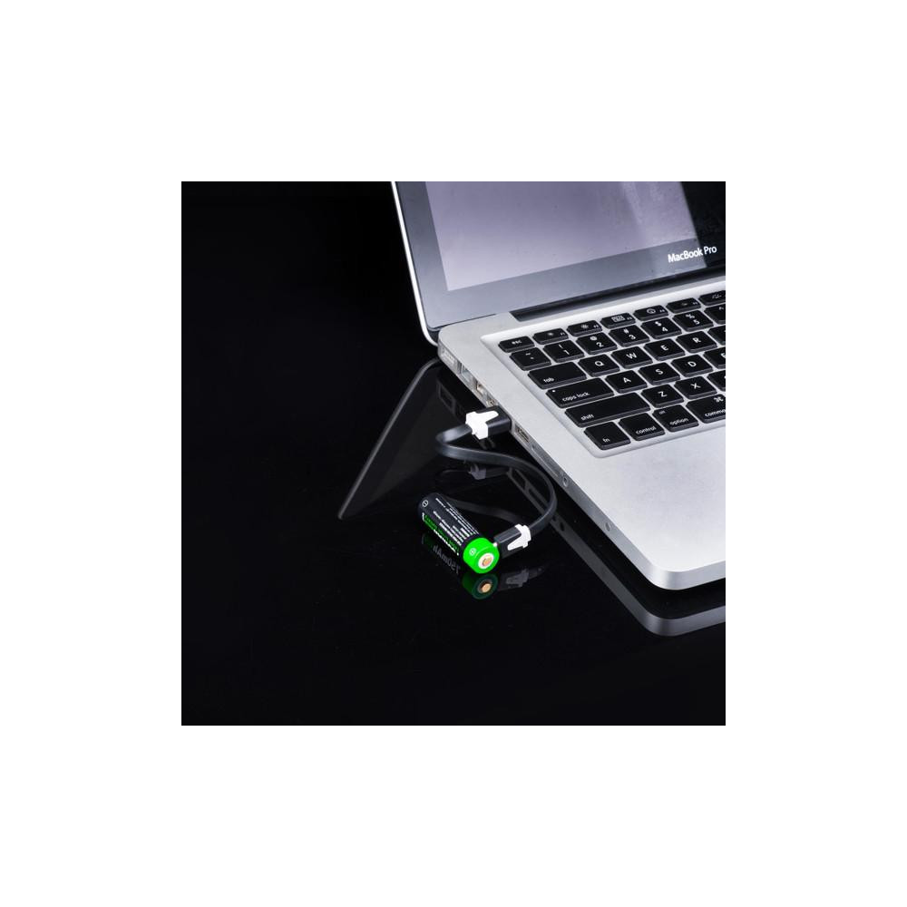 Rechargeable battery Nextorch 14500 Li-Ion with a capacity of 750 mAh. Charging is done via a micro USB port directly in the battery. Charger is included in the package.