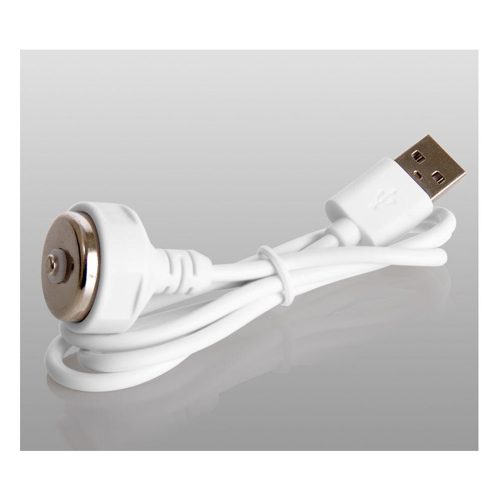 Replacement magnetic USB charger for flashlight models that have a magnetic base through which the batteries are charged directly in the flashlight body.