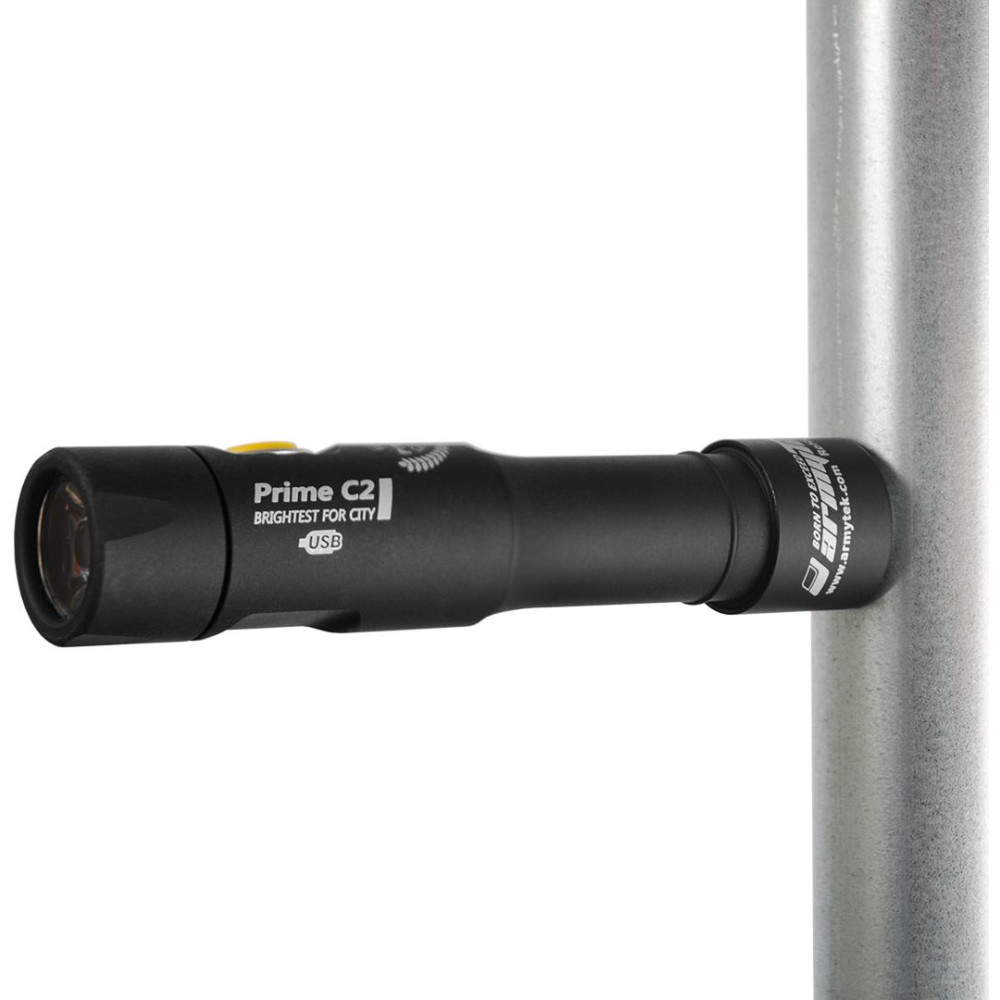 The high-performance rechargeable Armytek Prime C2 Magnet USB v3 XP-L flashlight is made of highly durable aircraft aluminum and its design fits perfectly in any hand. The luminous flux is 1160 LED lumens (980 lm OTF) and the range is up to 168 meters.