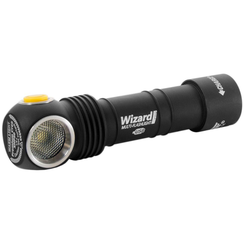 La linterna LED Armytek Wizard Pro , multiusos y de alto rendimiento, está fabricada en resistente aluminio aeronáutico y combina un frontal con una linterna clásica. Su pequeño flujo luminoso alcanza los impresionantes 2300 lúmenes LED y un alcance de hasta 130 metros. Se carga con cualquier fuente de alimentación mediante un cargador USB magnético . Un potente imán en el extremo permite fijar la linterna a cualquier superficie metálica.