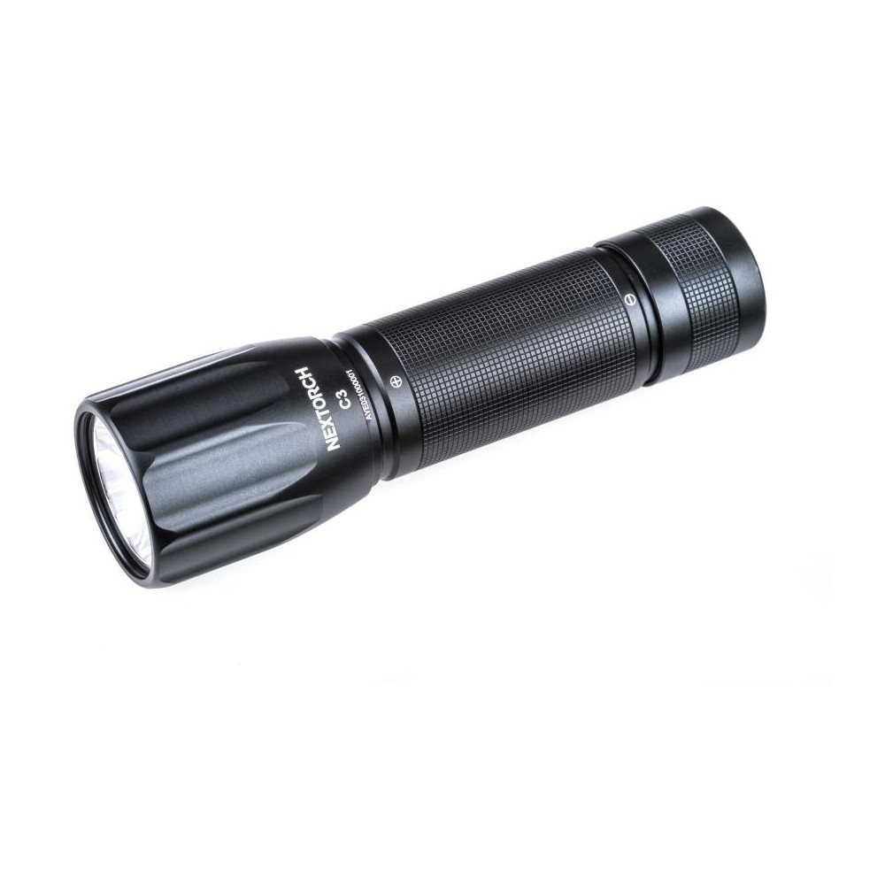 La linterna Nextorch C3 tiene una potencia máxima de 380 lm y un alcance de hasta 190 m en un cono de luz estrecho. La C3 ofrece tres modos de potencia que se pueden cambiar fácilmente según sea necesario. El cuerpo de la linterna está fabricado en aluminio de grado aeronáutico con un moleteado fino para un mejor agarre. Funciona con tres pilas AAA y su autonomía es de hasta 30 horas en un modo más bajo.