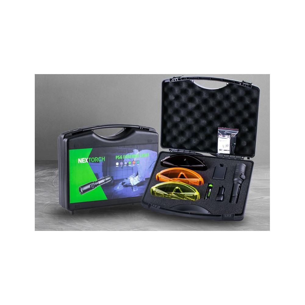 La linterna Nextorch P56 de 6 LED es un conjunto de luces forenses ideal para la investigación de la escena del crimen, la recolección de posibles pruebas y el trabajo de laboratorio forense . Con un diseño innovador, el P56 permite seleccionar y cambiar entre seis longitudes de onda de luz (blanca, azul, roja, verde, IR y UV). Una herramienta ideal para la policía y los servicios de investigación.