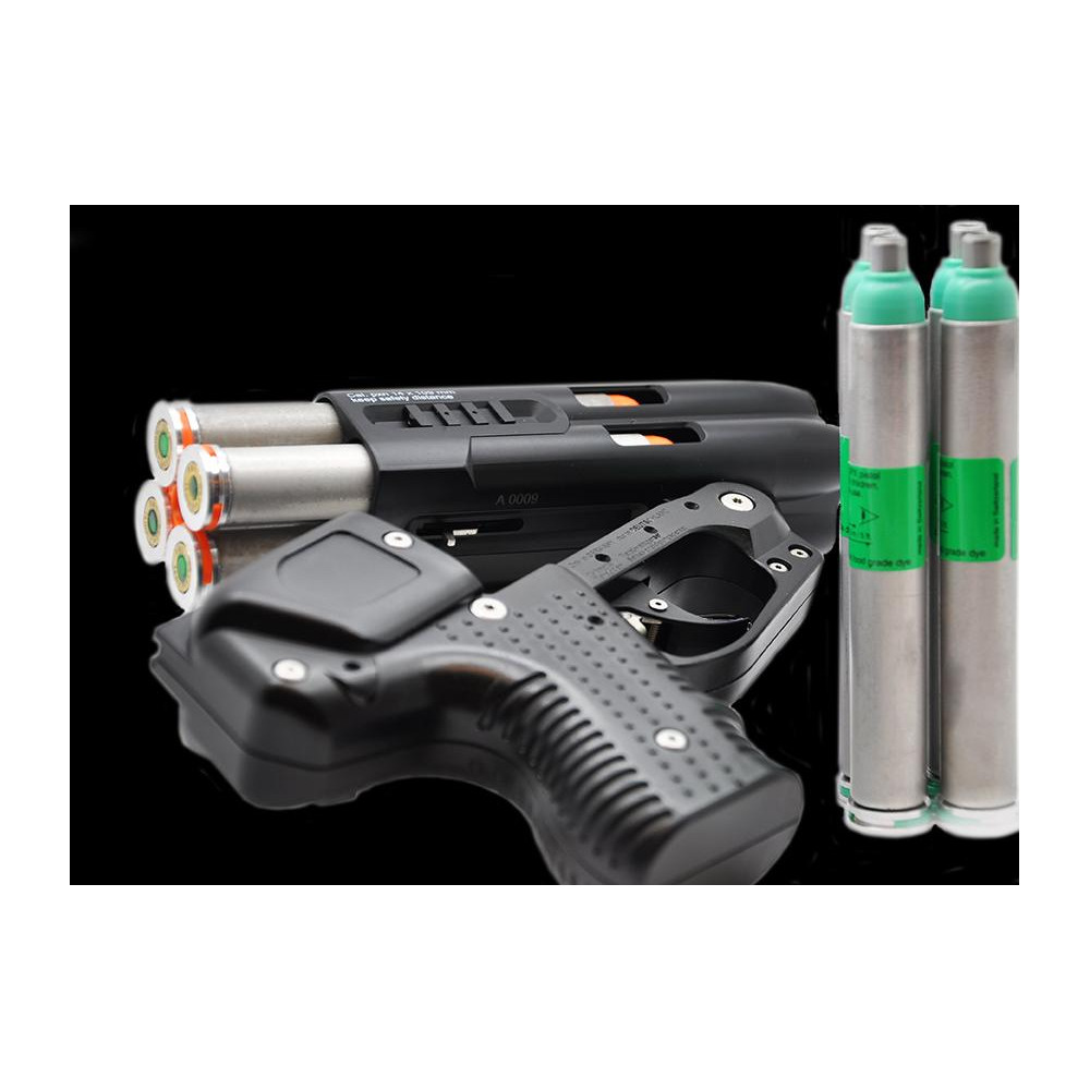 El cartucho está hecho de aluminio y contiene 10 ml de carga de entrenamiento. La singularidad de esta tecnología reside en su método de aplicación, que utiliza un cartucho piroeléctrico para iniciar el disparo en lugar de gas propulsor. Esto ofrece varias ventajas : un alcance significativamente mayor, la ausencia de fugas de presión del cartucho debido a cambios de temperatura y la posibilidad de usarlo en un espacio cerrado o, por el contrario, contra el viento.