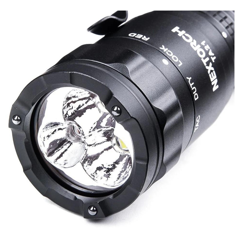 Lampe de poche tactique compacte NEXTORCH TA21 avec une puissance de 1300 lm et une portée allant jusqu'à 160 m . Elle offre 4 modes d'éclairage , un stroboscope instantané , un mode lumière rouge et une résistance IPX8 . Idéale pour les missions et les activités tactiques.