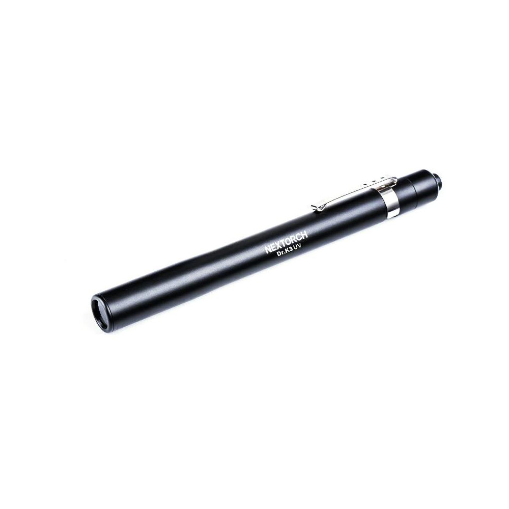 La lampe médicale UV compacte Nextorch Dr.K3, de la taille d'un stylo, produit une lumière ultraviolette (UV) d'une longueur d'onde de 365 nm . Ce modèle peut donc être utilisé pour examiner les personnes et les animaux, ainsi que pour vérifier les billets de banque ou détecter les saletés.