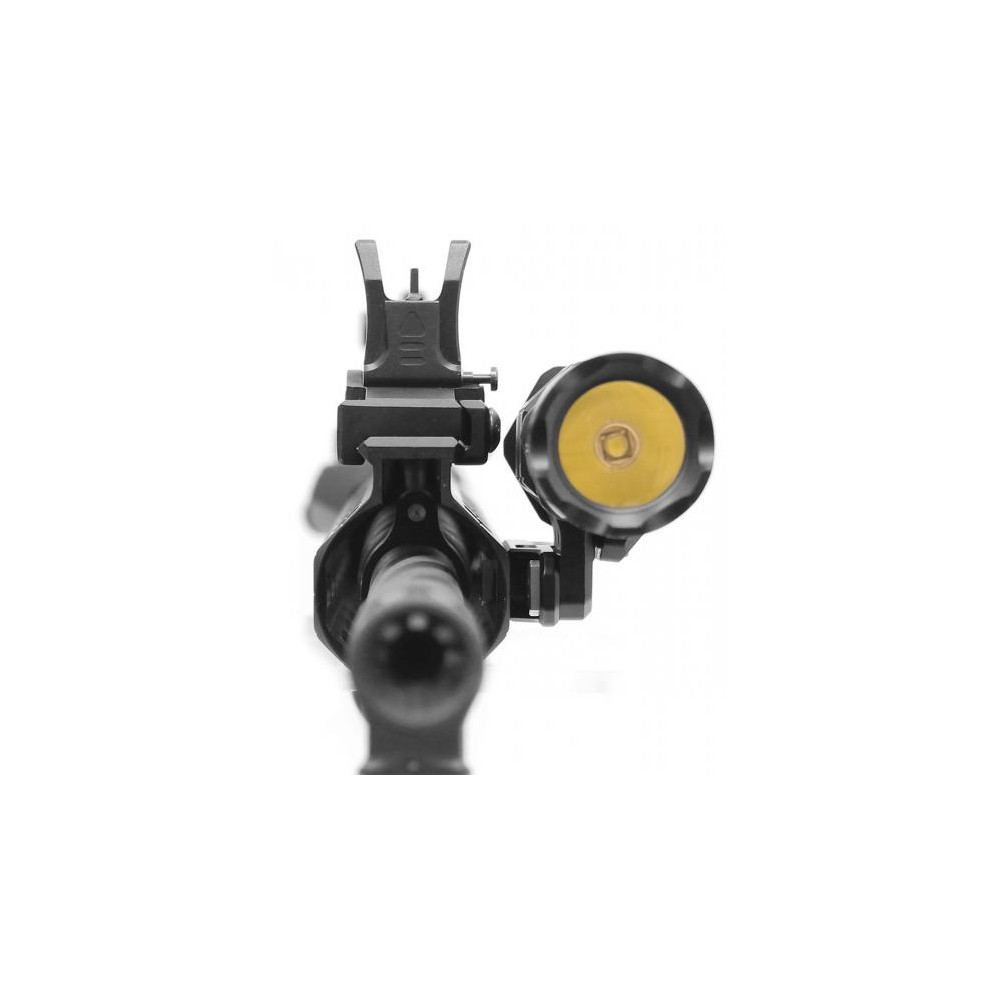 Suporte lateral discreto para fixação segura da lanterna na coronha M-LOK da sua arma.