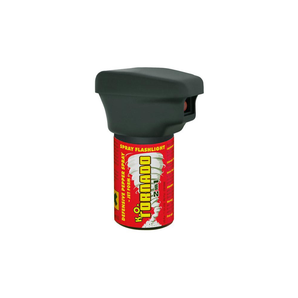 Перцовый баллончик KO TORNADO оснащен головкой со сверхъярким светодиодом, который вместе с 40 мл активного ингредиента OC (10% олеорезин капсикума) образует эффективное средство самообороны. Крышка, предотвращающая случайную утечку активного ингредиента, содержит 2 батарейки CR 2032 и также выполняет функцию выключателя света.