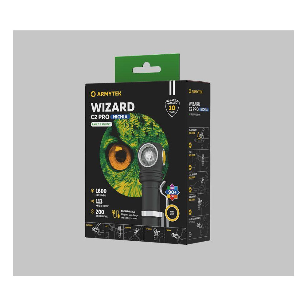 Armatek Wizard C2 Pro Nichia оснащён специальным светодиодом, обеспечивающим максимально точную цветопередачу. Он предназначен для использования в областях, где требуется чёткое различение цветов (фото- и видеосъёмка, покраска, полировка и т. д.). Невероятно мощный, с цветовой температурой 4500 К и световым потоком 1600 люмен, он обеспечивает практически идеальную естественную цветопередачу на расстоянии до 113 метров.
