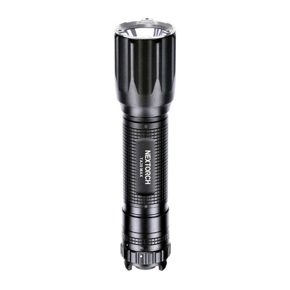 Мощный тактический фонарь Nextorch TA30 MAX создан на основе проверенной концепции TA30 и обладает световым потоком до 2100 лм и дальностью действия до 250 метров . TA30 MAX оснащен запатентованным поворотным кольцом для эффективного профессионального использования (тактические операции на коротких дистанциях). Головка фонаря оснащена керамическими наконечниками для защиты от разбивания стекла, корпус изготовлен из авиационного алюминия и оснащен литий-ионным аккумулятором высокой емкости 21700 (5000 мА·ч). Фонарь совместим с тактическим гнездом FR-2.