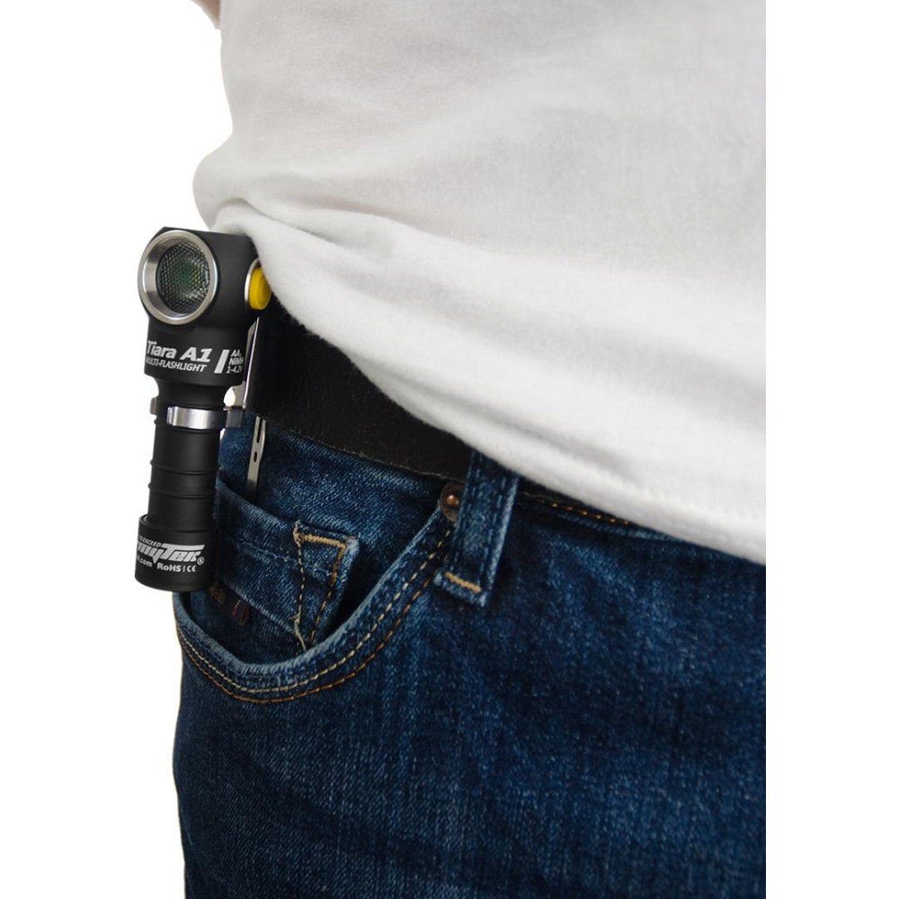 Многофункциональный компактный фонарь Armytek Tiara A1 v2 XP-L (белый свет) сочетает в себе налобный фонарь и классический карманный фонарик.