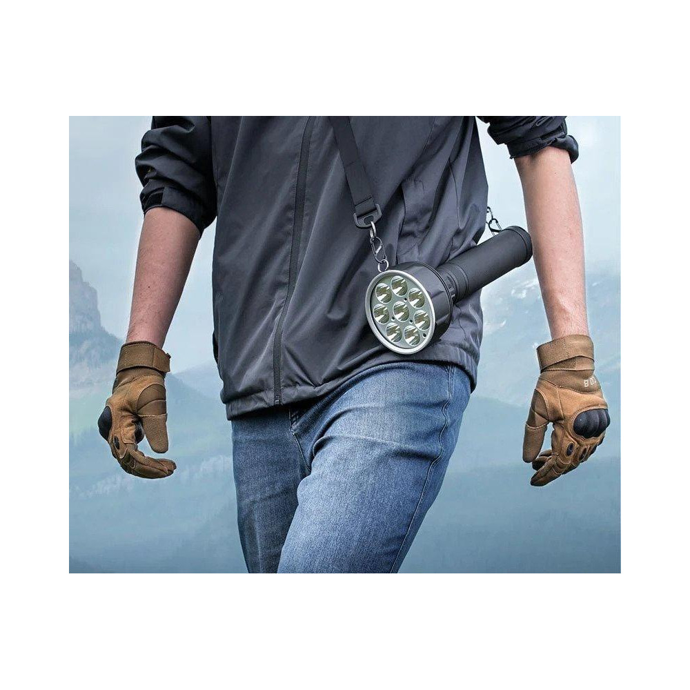 Nextorch Saint Torch 31 — это высокопроизводительный поисковый фонарь нейтрального белого цвета с невероятно высокой светоотдачей 20 000 люмен и дальностью освещения до 740 м . Ёмкий аккумулятор полностью заряжается за 3 часа с помощью универсального зарядного устройства USB-C. Уровень заряда аккумулятора отображается четырьмя светодиодами рядом с кнопкой питания. Фонарь также можно использовать как водонепроницаемый внешний аккумулятор для мобильного телефона или планшета. Благодаря плечевому ремню Saint Torch 31 удобно переносить на большие расстояния или переносить в практичной сумке.