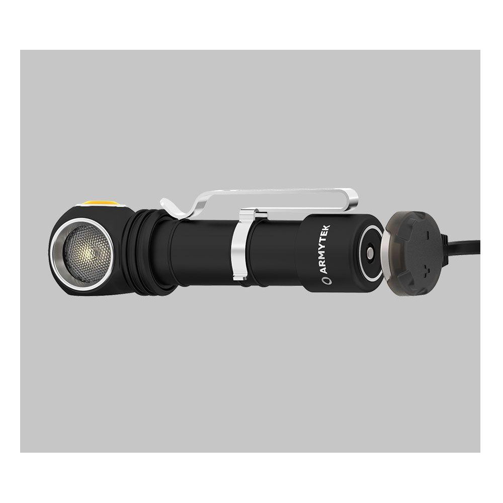 Armytek Wizard C2 WR Основные преимущества: 4 светодиода: потрясающий луч красного света 230 люмен и теплый свет до 1020 люмен благодаря 2 светодиодам каждого цвета. Красный свет: практически невидим для животных, рыб и насекомых, удобен для ночного видения. 5 режимов яркости для каждого цвета, простое управление одной кнопкой и двойное нажатие для переключения между белым и красным светом. Новая оптическая система и линза TIR: пропускает больше люмен, обеспечивает большую дальность луча с комфортным широким рассеиванием. Максимальная эффективность светодиодов: в Wizard C2 WR мы достигли 1020 люмен. Новая конструкция головной части: улучшенное рассеивание тепла и более яркий свет с большим количеством люмен. Увеличенная боковая кнопка: мягче и удобнее нажимается. Модернизированная электроника и прошивка: увеличенное время работы и более высокая яркость. Простое управление одной кнопкой: двойной щелчок для переключения между белым и красным светом, нажатие и удержание для переключения между режимами выбранного цвета света. Стильный корпус: матовое анодирование, лаконичный стиль, новый фирменный стиль. Новое магнитное зарядное устройство: фонарь заряжается в 2 раза быстрее (3 ч 20 мин). Применение: Чтение карт, Наблюдение за звёздами, Рыбалка и охота, Кемпинг или активный отдых на природе, Велоспорт, Профессиональное использование. Комплектация: Фонарик Armytek Wizard C2 WR, 1 шт., аккумулятор 1x18650 Li-Ion (3200 мА·ч), магнитное зарядное устройство USB, оголовье с адаптером, зажим, запасные уплотнительные кольца, руководство пользователя.
