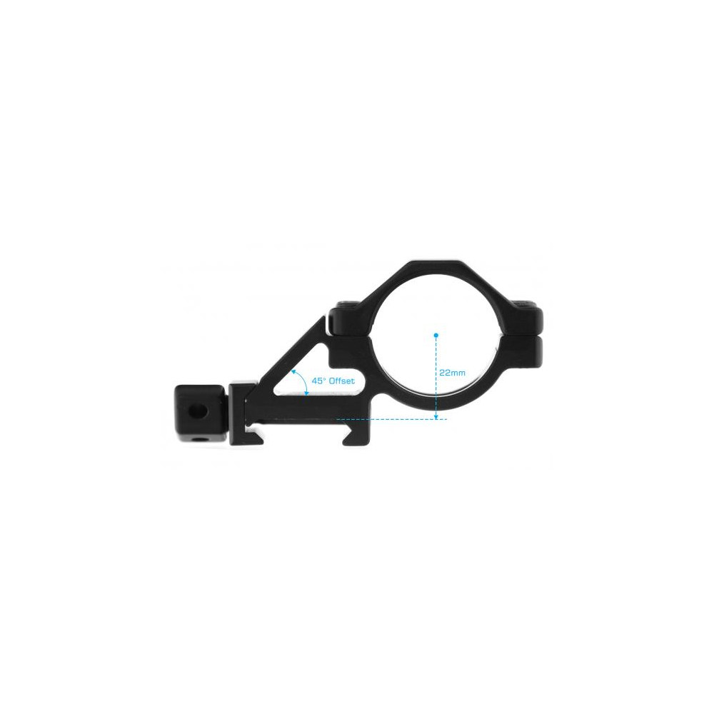 Bočná montáž s nízkym profilom pre spoľahlivé uchytenie svietidla na Picatinnej lište . Tento model je vyrobený z leteckého hliníka s matným eloxovaným povrchom a dodáva sa s vložkami pre rôzne priemery svietidiel ( 20 mm , 25,4 mm a 27 mm ).